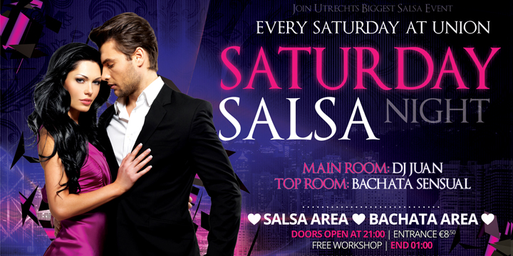 Iedere zaterdagavond organiseren we een spectaculaire Latin Night. Om 21.00 uur warmen we de avond op met een super leuke workshop en vanaf 22.00 uur staan onze DJ’s voor je klaar in zowel de Main Area met de beste Salsa als in de top Area met de lekkerste Bachata. Zowel cursisten als niet-cursisten zijn meer dan welkom! Dans je niet? Geen enkel probleem, want we hebben ook een luxe bar met heerlijke cocktails. Een kaartje koop je voor €8,50 aan de deur.